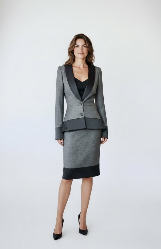 Dokonalý dámský kostýmek vhodný do práce i na event. Šijeme na míru pro každou velikost. Děláme i různé barevné kombinace. V případě zájmu nás kontaktujte na fashion@alenawilson.cz